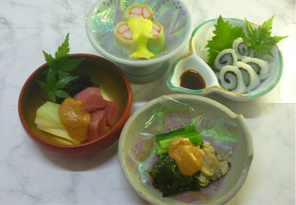 お料理メニュー あさりとわけぎの酢味噌和え アサリのさかむし イカ鳴門巻き イサキの甘酢あんかけ おろし鉄火丼 カニ胡瓜巻き ちらし寿司 まぐろヌタ メバルの煮付け 鯵のタタキ 寄せ盛合せ 桜エビのかき揚げ 刺身盛り合わせ 手羽先の塩焼き 鯛のかぶと煮 天ぷら盛合せ